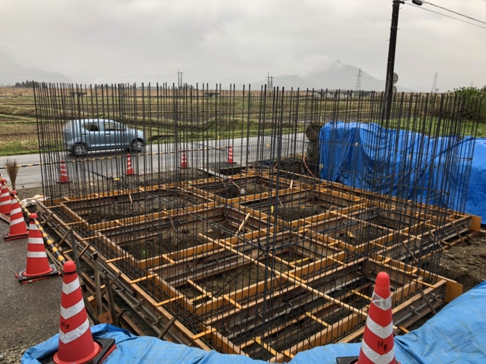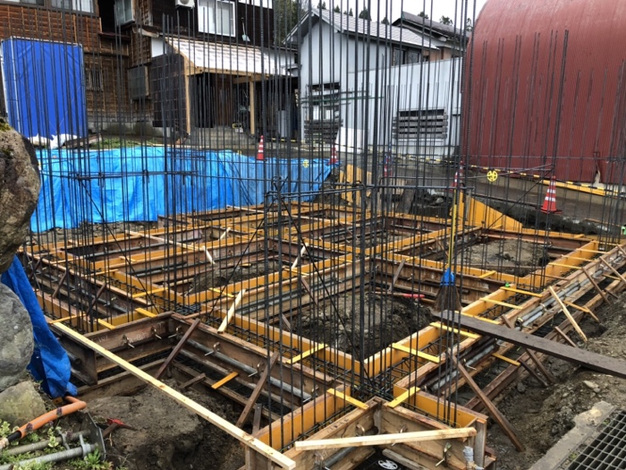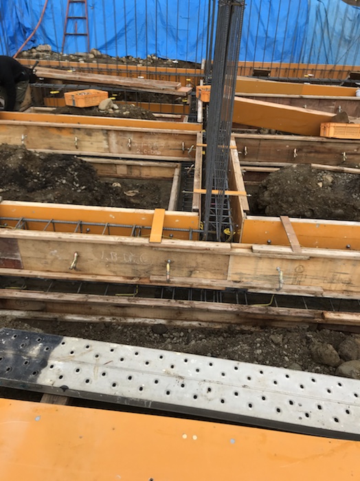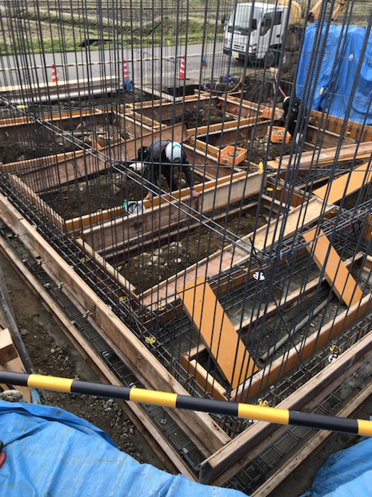 作業内容としては、ベースコンクリート、地中梁コンクリート部分の型枠組みです。