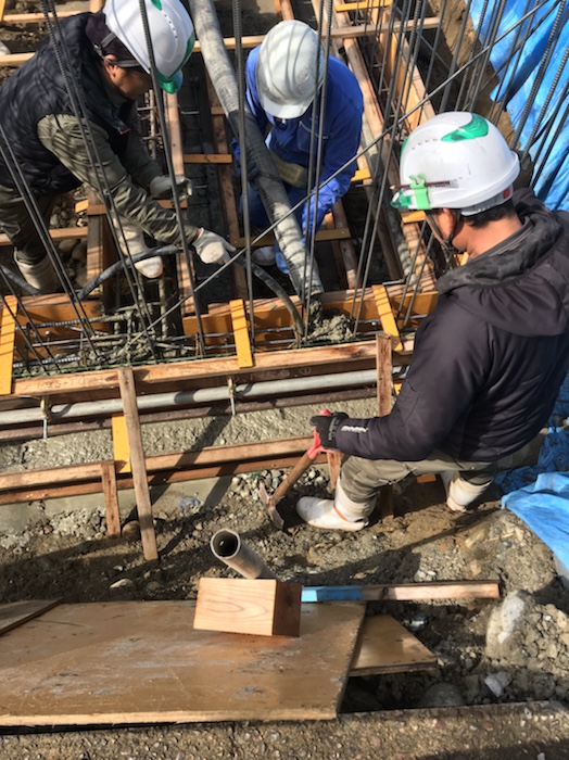 今日は、今年初のコンクリートポンプを使ってのコンクリート打設でした。天気も丁度よく打設日和でした。